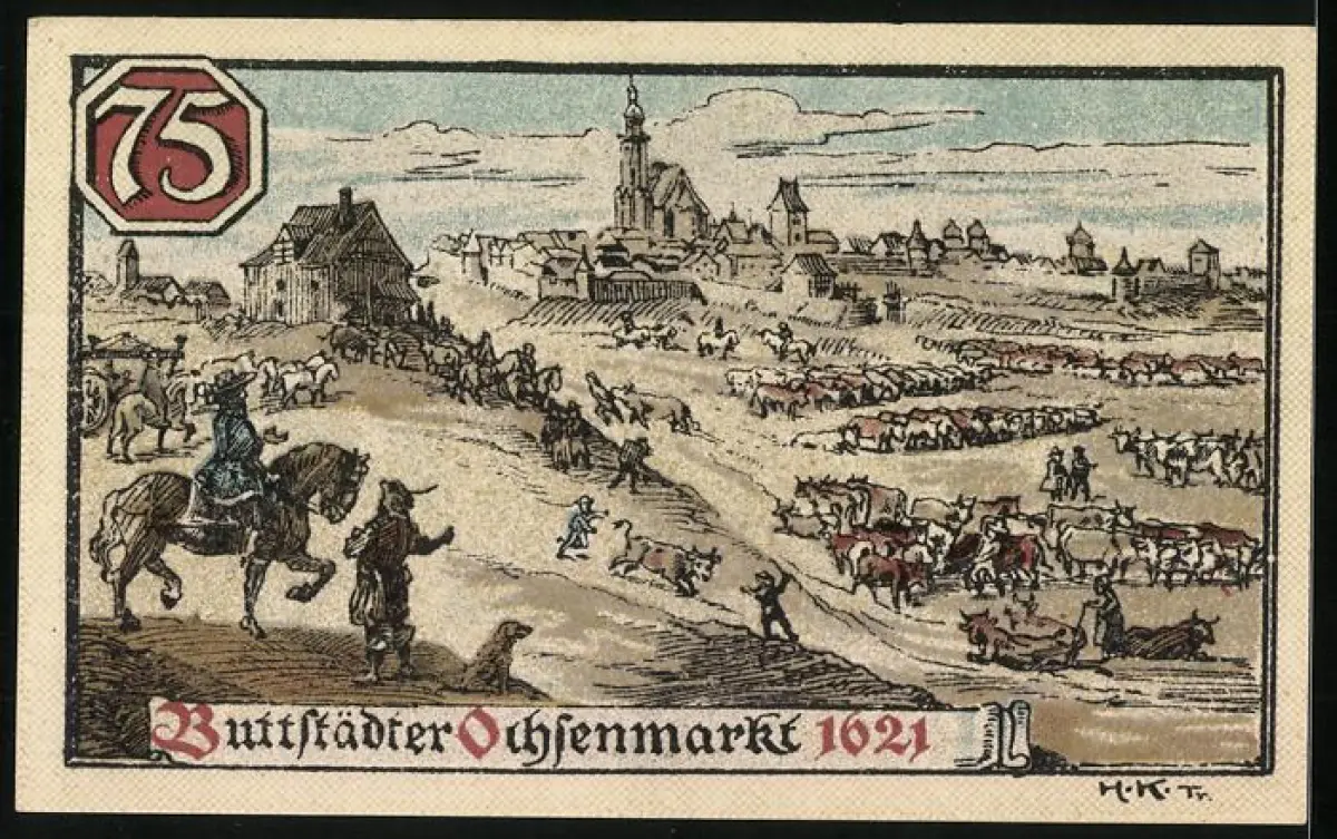 Notgeld Buttstädt, 75 Pfennig, Wappen mit Justitia, Buttstädter Ochsenmarkt 1621