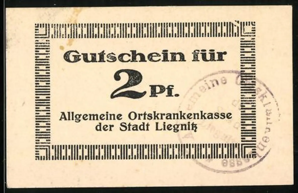 Notgeld Liegnitz, 2 Pfennig, Gutschein der Allgemeinen Ortskrankenkasse