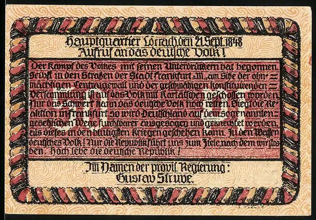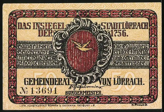 Notgeld Lörrach, 50 Pfennig, Aufruf an das deutsche Volk und das Insiegel der Stadt Lörrach