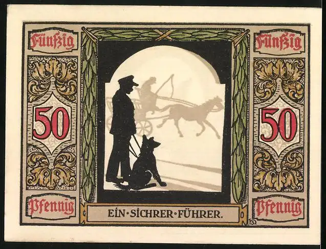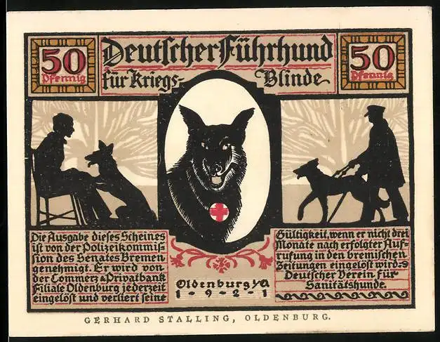 Notgeld Oldenburg 1921, 50 Pfennig, Deutscher Führhund für Kriegsblinde