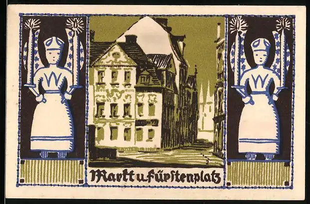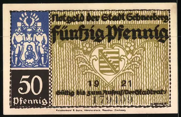 Notgeld Schneeberg 1921, 50 Pfennig, Markt und Fürstenplatz, Wappen