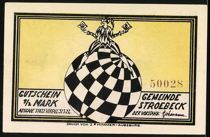 Notgeld Stroebeck 1921, 1 /2 Mark, Schach-das Narren-Matt und Ball