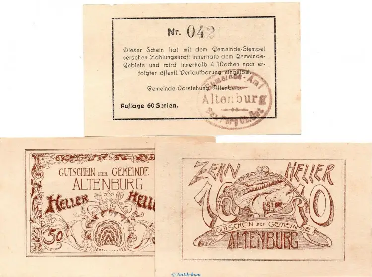 Notgeld der Gemeinde Altenburg S.26.IV.D.c braun , Set mit 3 Scheinen in kfr. o.D. Notgeld Oberösterreich