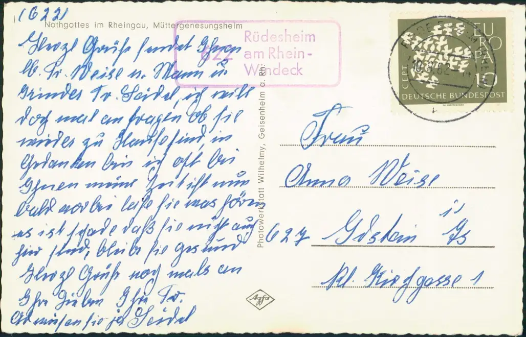 Nothgottes-Rüdesheim (Rhein) Müttergenesungsheim 1962 Landpoststempel 622