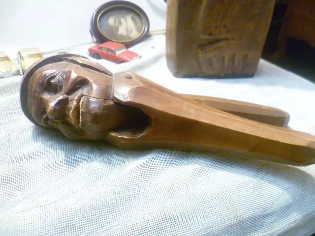 Nußknacker für Hasselnüsse oder Wallnüsse Erzgebirge oder Alpenländisch um 1920 handgeschnitzt !