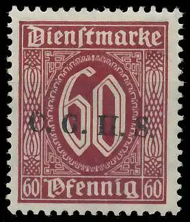 60 Pfg Wert aus der 2. Dienstmarkenausgabe (Marken des deutschen Reiches mit Aufdruck C.G.H.S.), rotkarmin