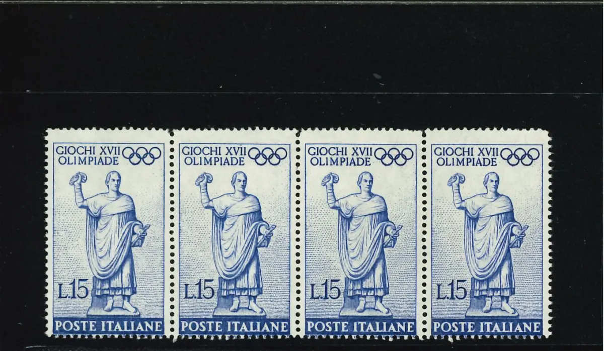 MNH - Vollgummi - OLYMPIADE 15 L. STARK VERTIKAL VERSCHOBENE VERZAHNUNG ABGESCHRÄGTER WINKEL FÜR DENT. ABNORMALER VIERSTREIFEN - Kat. euro 1000 Cod. ITAV_0995