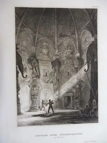 Titel: ORIGINAL- STAHLSTICH : INNERES EINES GÖTZENTEMPELS zu Benares