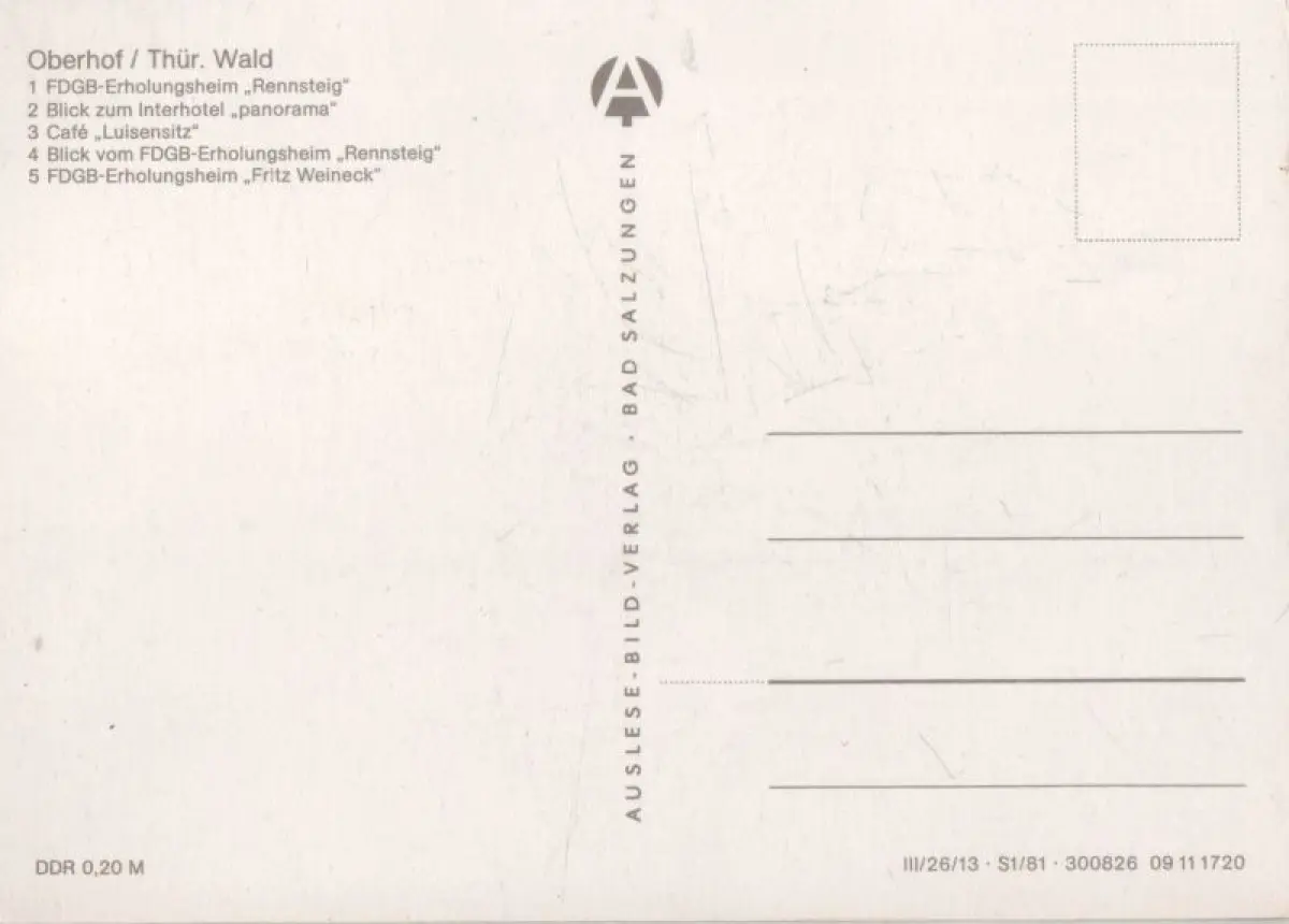 Postleitzahl:98559 (neu) / O 6055 (alt)