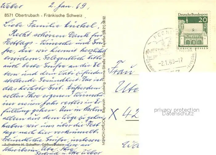 Obertrubach Panorama Obertrubach postalisch gelaufen 1969 Erhaltung siehe scans [WerneD78] WernPID7