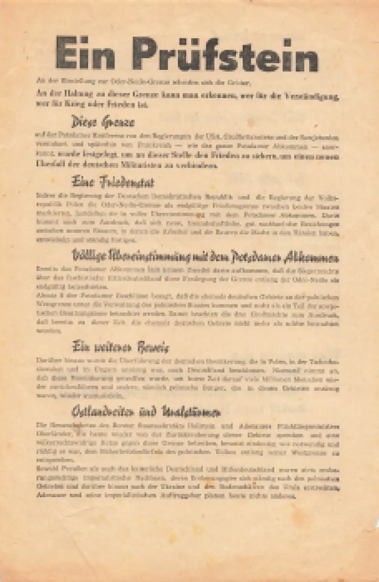 Oder-Neiße-Grenze Flugblatt um 1950 Ostzone
