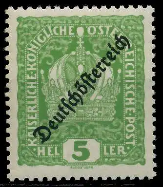 5 H Wert aus der Freimarkenausgabe von 1918 (Aufdruckausgabe Deutsch-Österreich)