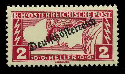 2 H Wert aus der Ausgabe - Drucksacheneilmarken von 1916 in Zähnung A (L12 1/2) mit diagonalem Aufdruck "Deutsch Österreich"