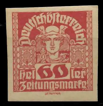60 H Wert aus der Zeitungsmarkenausgabe von 1920 Merkurkopf (dickes graues Papier)