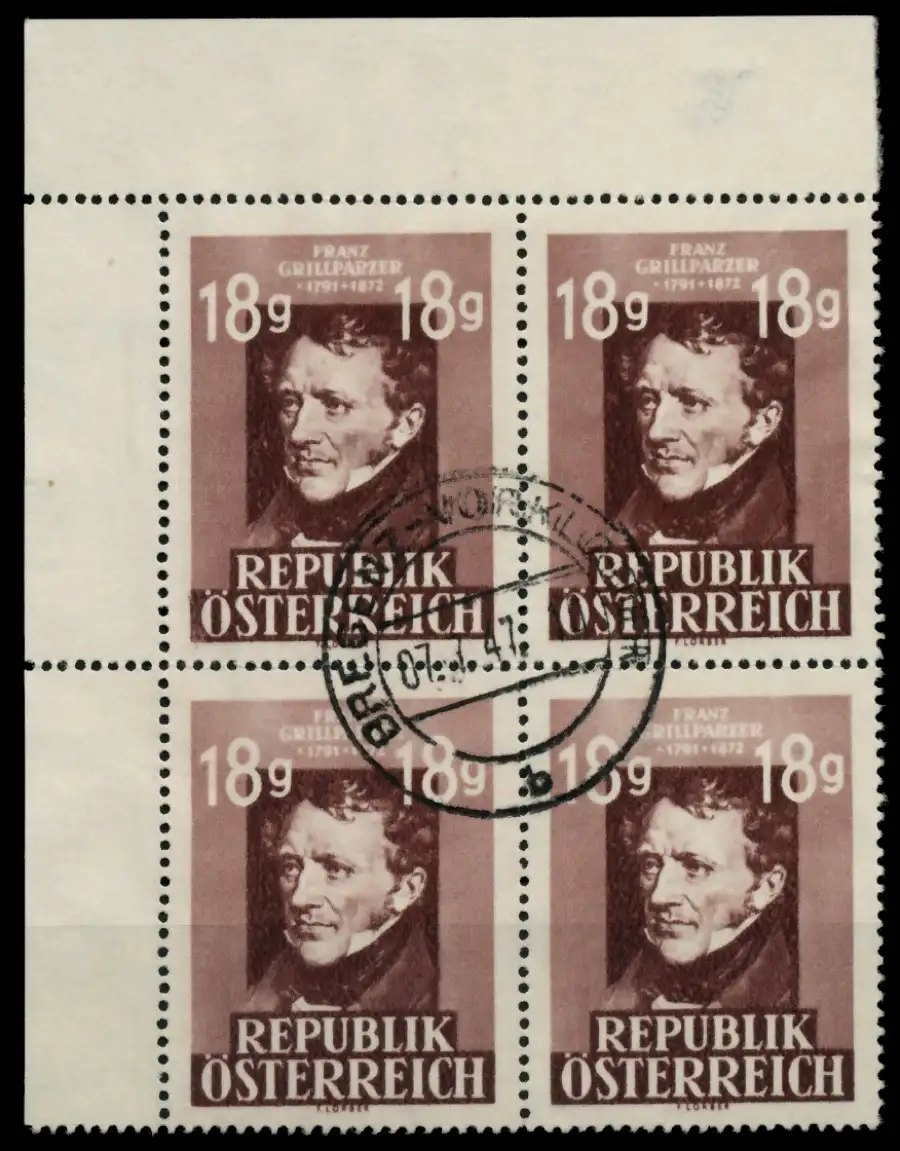 18g Wert 75 Todestag von Grillparzer, Rastertiefdruck, Eckzahn unten rechts kurz