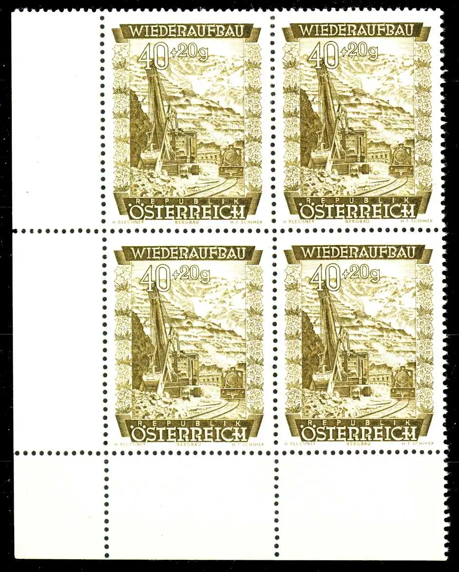 40g + 20g Wert aus der Ausgabe zugunsten des österreichischen Wiederaufbau-Fonds, senkrechte Mittellinie oben ca. 1,5 cm angetrennt