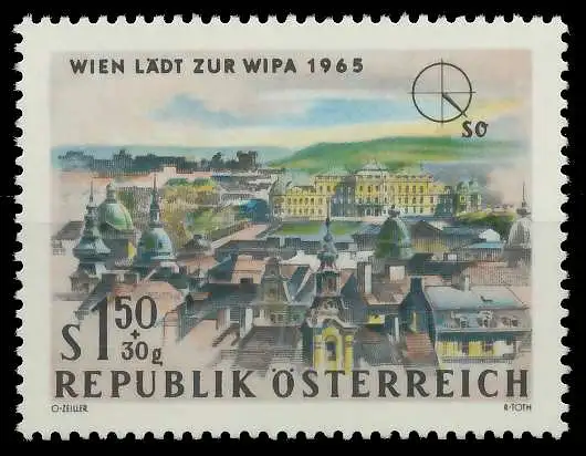 1,5S + 30g Wert aus der Ausgabe Wien lädt zur WIPA 1965 (Briefmarkenausstellung)