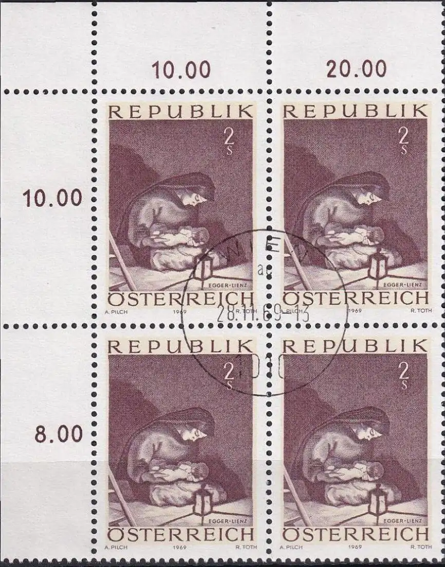 ÖSTERREICH 1969 Mi-Nr. 1318 Eckrand-Viererblock o used - aus Abo