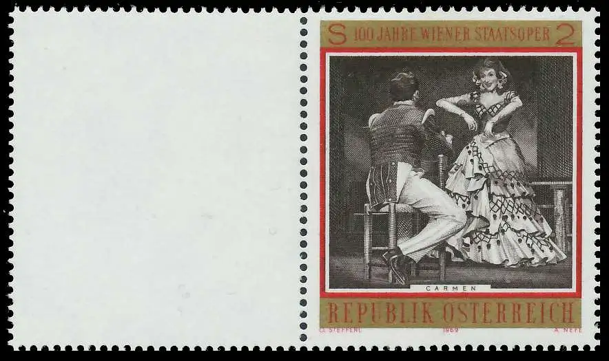 2S+LF Zusammendruck aus der Block-Ausgabe 100 Jahre Wiener Staatsoper (MichelNr.: WZd14, 1299)