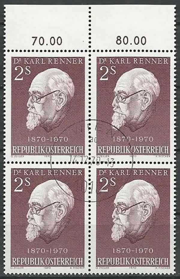 ÖSTERREICH 1970 Mi-Nr. 1351 Viererblock o used - ABO-Ware