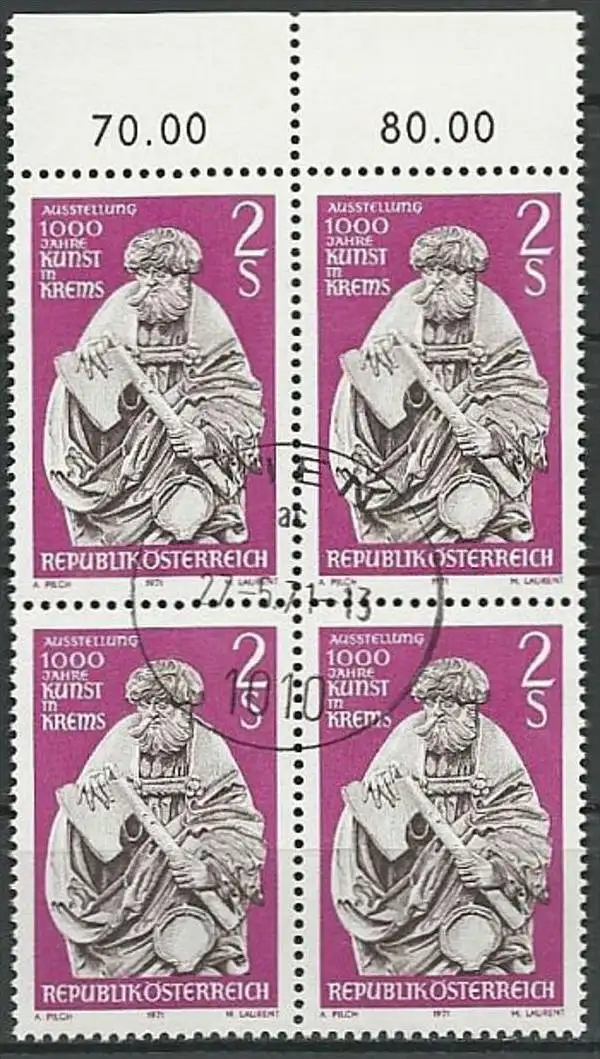 ÖSTERREICH 1971 Mi-Nr. 1363 Viererblock o used - ABO-Ware