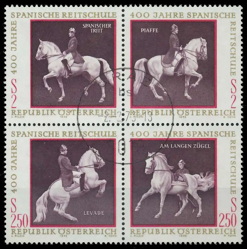 2S+2,50S Werte aus der Block-Ausgabe 400 Jahre Spanische Hofreitschule (MichelNr.: 1395, 1396 1397, 1398)