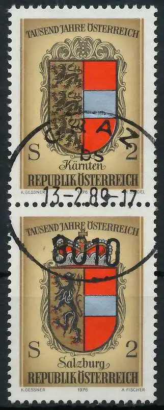 2+2S Wert aus der Block-Ausgabe 1000 Jahre Österreich, Bundesländer, Wappen (MichelNr.: SZdd, 1525, 1528)