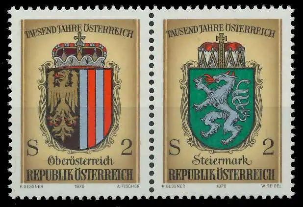 2+2S Wert aus der Block-Ausgabe 1000 Jahre Österreich, Bundesländer, Wappen (MichelNr.: WZdb, 1523, 1524)