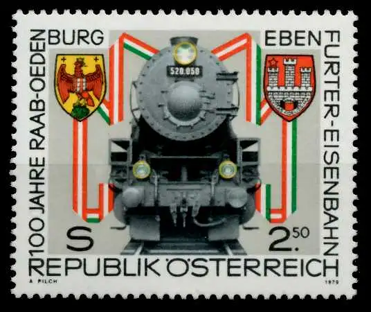 2,50S Wert aus der Ausgabe 100 Jahre Raab-Oedenburg-Ebenfurter Einsenbahn