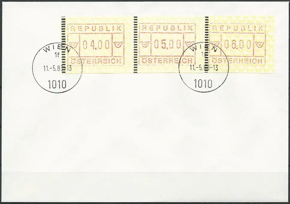 ÖSTERREICH 1988 Mi-Nr. ATM 2 Satz 1 Automatenmarken FDC