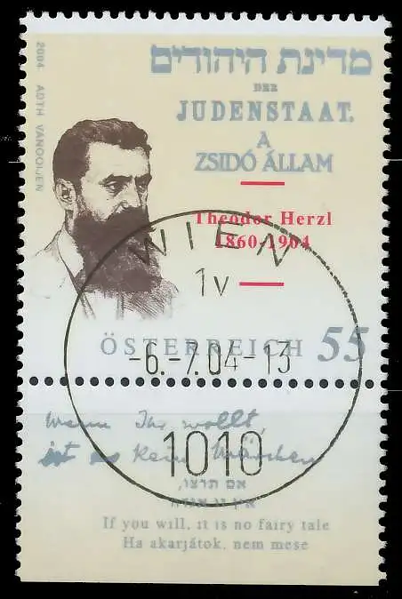 55 Cent Wert aus der Ausgabe Theodor Herzl 1860 - 1904, Judenstaat