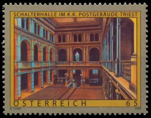 65 C Wert aus der Ausgabe Altes Österreich - Schalterhalle im K.K. Postgebäude Triest