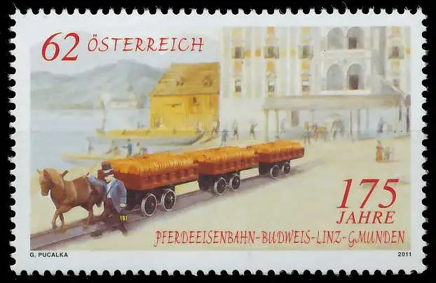 62 C Wert aus der Ausgabe 175 Jahre Pferdeeisenbahn Busweis Linz Gmunden