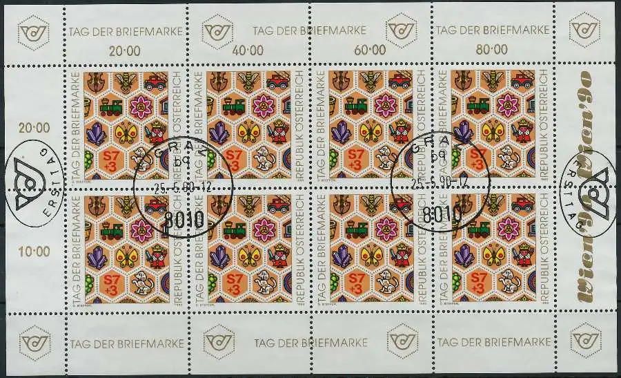 7S + 3S Wert aus der Ausgabe Tag der Briefmarke 1990 im Kleinbogen (ÖS 80 = 6 Euro PP)