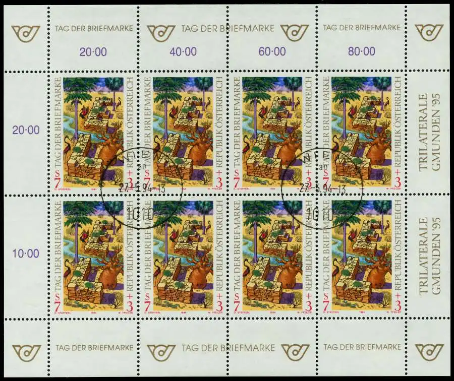 7S + 3S Wert aus der Ausgabe Tag der Briefmarke 1994 im Kleinbogen (ÖS 80 = 6 Euro PP)