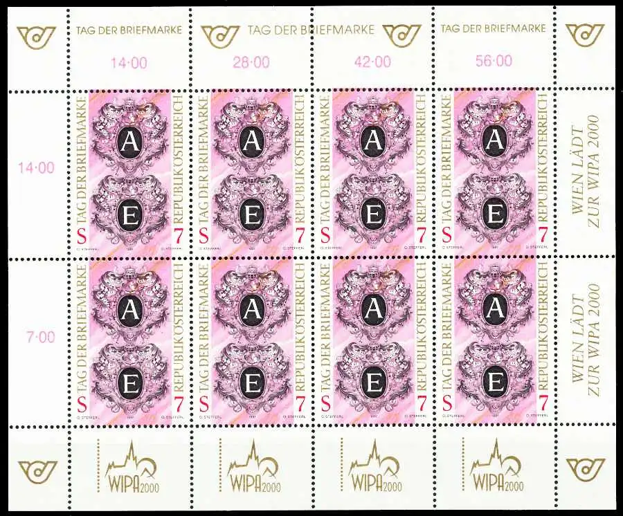 7S Wert aus der Ausgabe Tag der Briefmarke 1997 im Kleinbogen (ÖS 56 = 4 Euro PP)