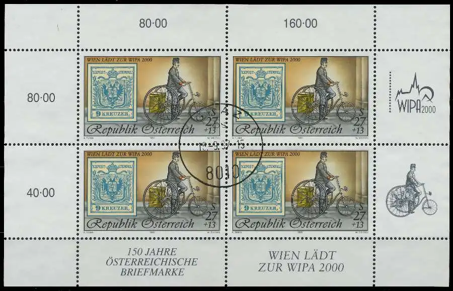 27S + 13S Wert aus der Ausgabe WIPA 2000 von 1997 im Kleinbogen (ÖS 160 = 12 Euro PP)