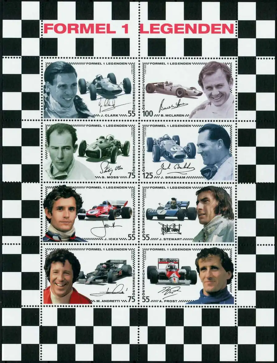 Ausgabe Formel 1 Rennfahrer im Zusammendruck-Kleinbogen (MichelNr.: 2592, 2593, 2594, 2595, 2596, 2597, 2598, 2699)