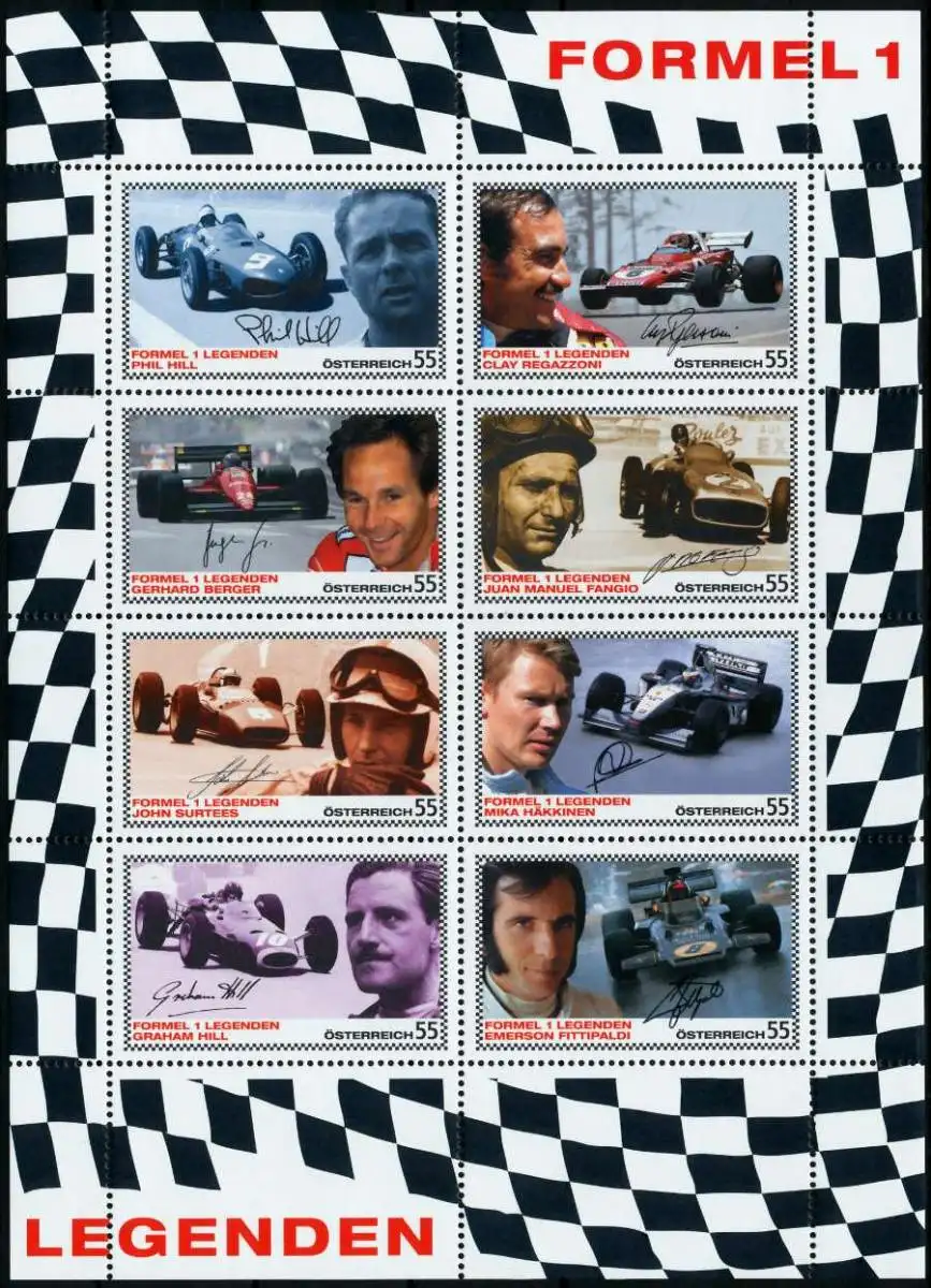 Ausgabe Formel 1 Legenden im Zusammendruck-Kleinbogen (MichelNr.: 2654, 2655, 2656, 2657, 2658, 2659, 2660, 2661)