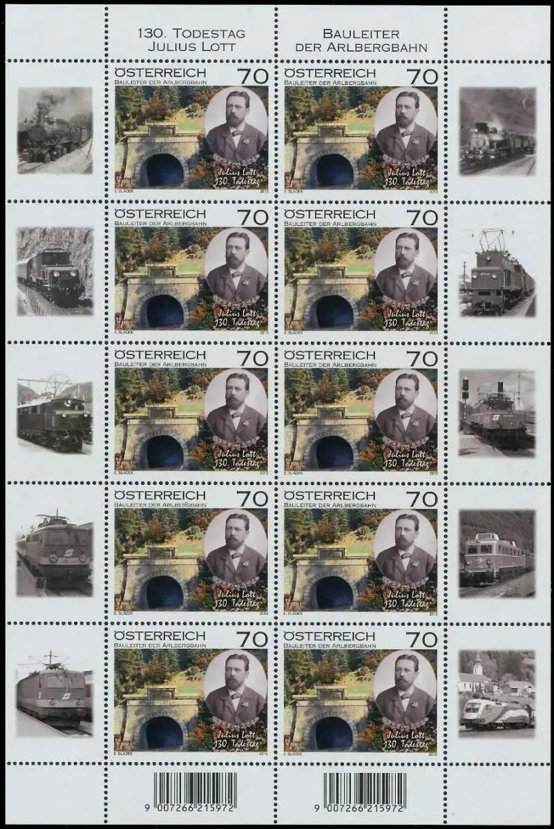 70 Cent Wert aus der Ausgabe Bauleiter der Arlbergbahn, Julius Lott
