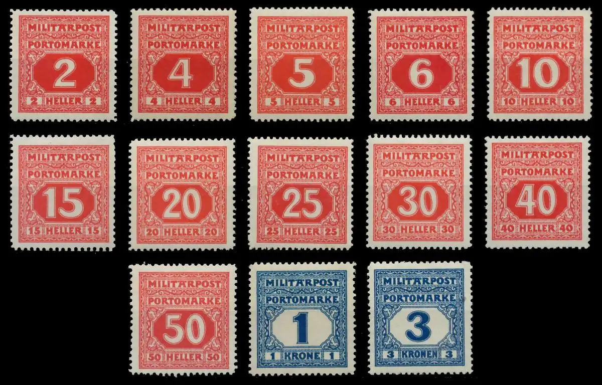 Militärpost-Portomarkenausgabe, Ziffernzeichnung in Zähnung L 12 1/2