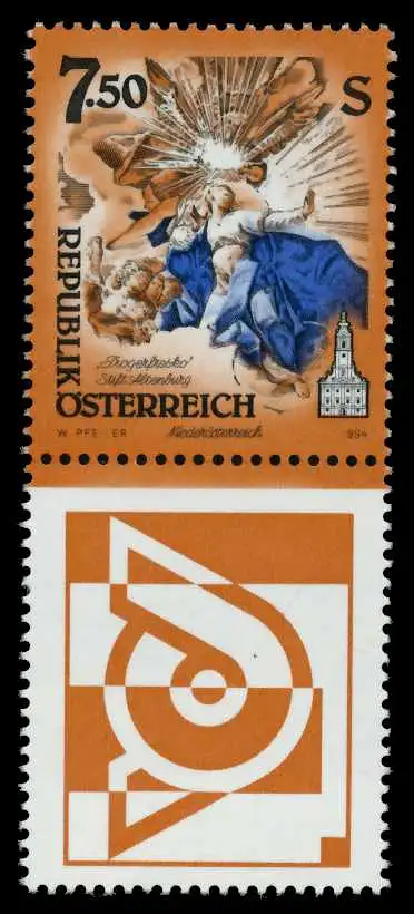 7,5S Wert aus der Freimarken-Ausgabe Kunstwerke aus Stiften und Klöstern, mit anhängendem Zierfeld unten (MichelNr.: 2124)