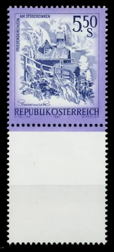 5,5S Wert aus der Freimarken-Ausgabe Schönes Österreich mit anhängendem Leerfeld unten