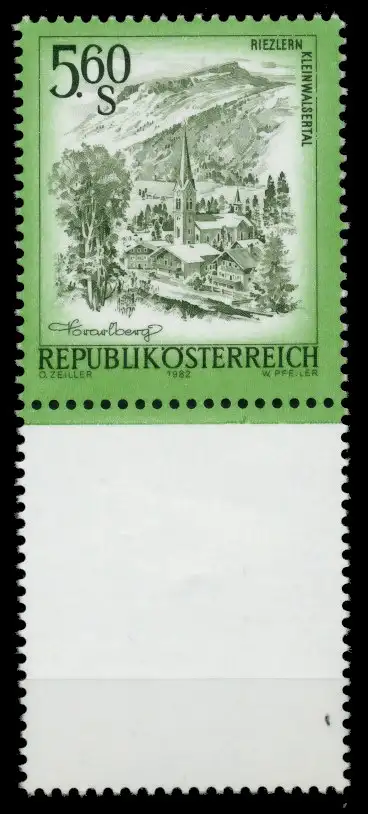 5,6S Wert aus der Freimarken-Ausgabe Schönes Österreich, mit anhängendem Leerfeld unten