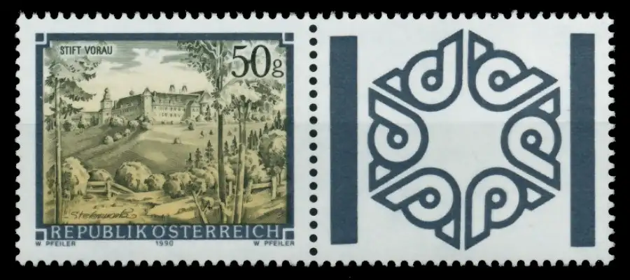 0,50S Wert aus der Freimarken-Ausgabe Stifte und Klöster - Vorau, mit anhängendem Zierfeld rechts (MichelNr.: 2006)