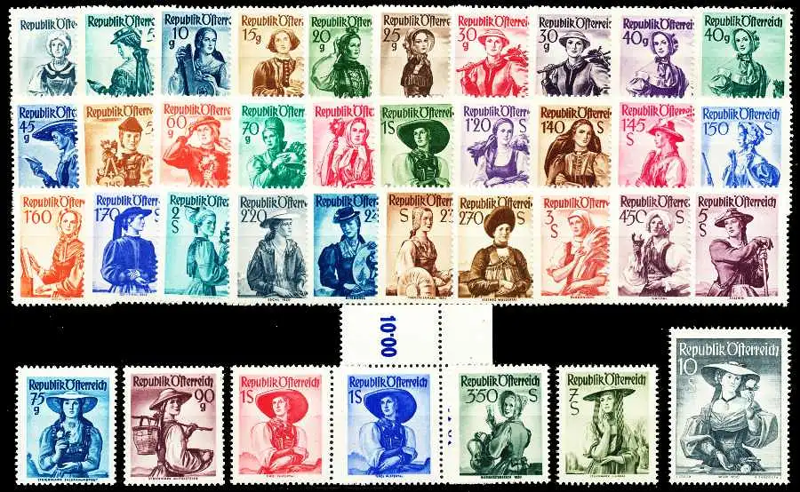 Ausgabe Trachtenserie von 1948-1956, grau/gelbes Papier (37 Werte)