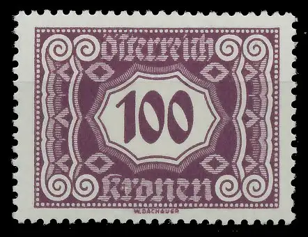 100 Kr Wert aus der Ausgabe Portomarken Ziffernzeichnung im Zehneck, Querformat