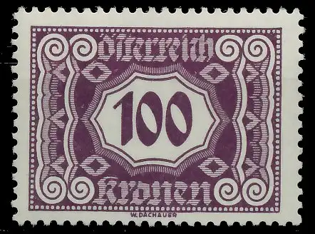 100 Kr Wert aus der Ausgabe Portomarken Ziffernzeichnung im Zehneck, Querformat