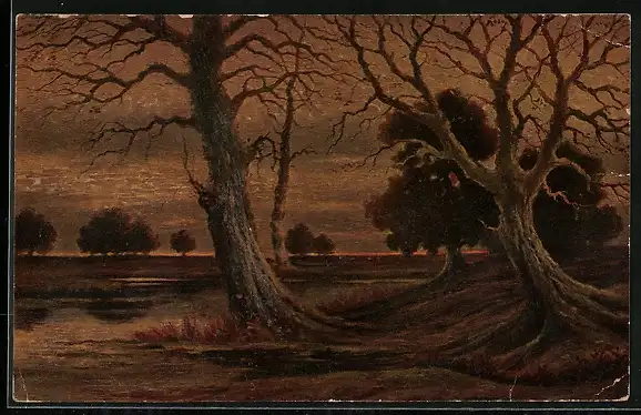 Ölgemälde-Imitations-AK Degi Nr. 1077: Dämmerung im Moor