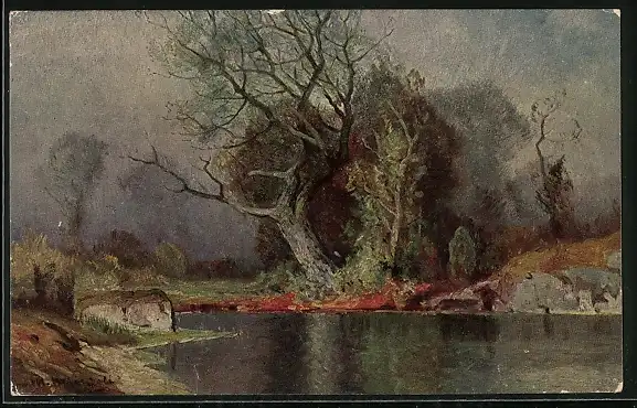 Ölgemälde-Imitations-AK Degi Nr. 353: Kahler Baum am Ufer, Herbssturm von G.M. Meinzolt